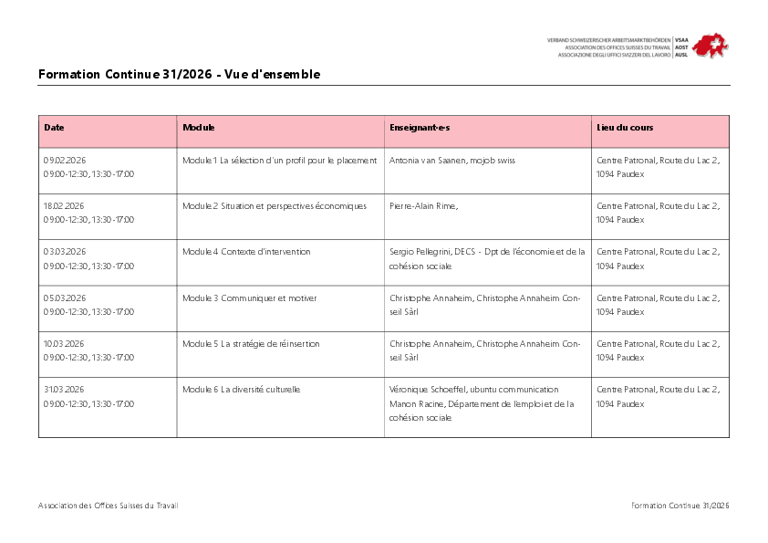 La formation CP Séniors romande, conçue sur mandat de la CRT et de l’AOST en collaboration avec le GLACO et le bureau FBI, accompagnera les pratique quotidienne de conseiller en personnel ORP. Le programme privilégie la transmission de savoirs immédiatement utiles sur le terrain professionnel et favorise les échanges intercantonaux.